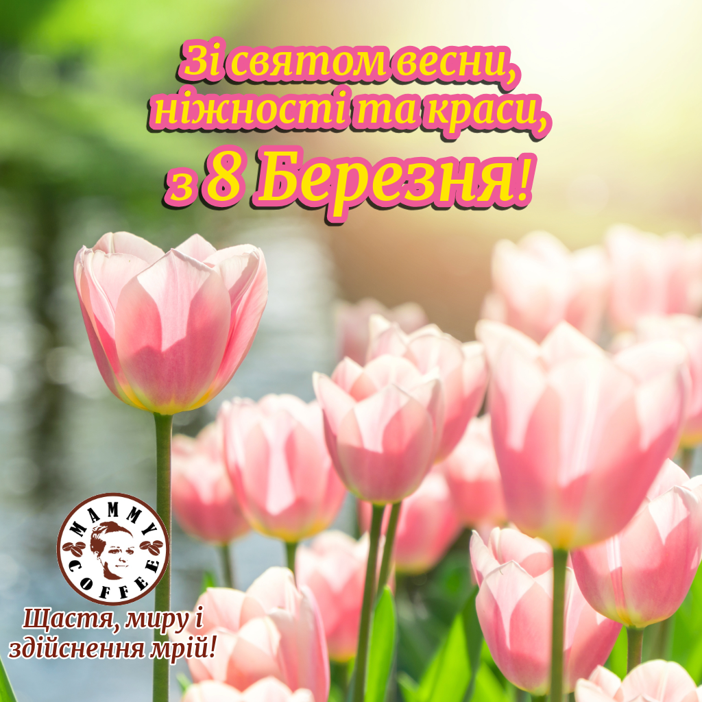 Любі жінки! Вітаємо вас з 8 березня! Це красиве свято на початку весни приходить до нас, коли все оживає та розквітає. Нехай у вашому житті буде вічна весна, яскраво світить сонце, а дні будуть світлими і безхмарними. Усмішок, гарного настрою, радості, щастя!